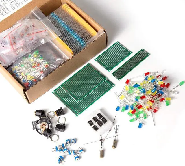 The Assortment comes in durable cardboard box, each components type is sorted accordingly Each different component is packaged in a plastic bag, Resistors values are stamped with the according value