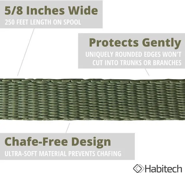 This 250 Foot Roll of webbing for staking and guying trees is soft enough to tie directly to the tree, while offering 1, 800 lb. tensile strength for anchoring them firmly.
