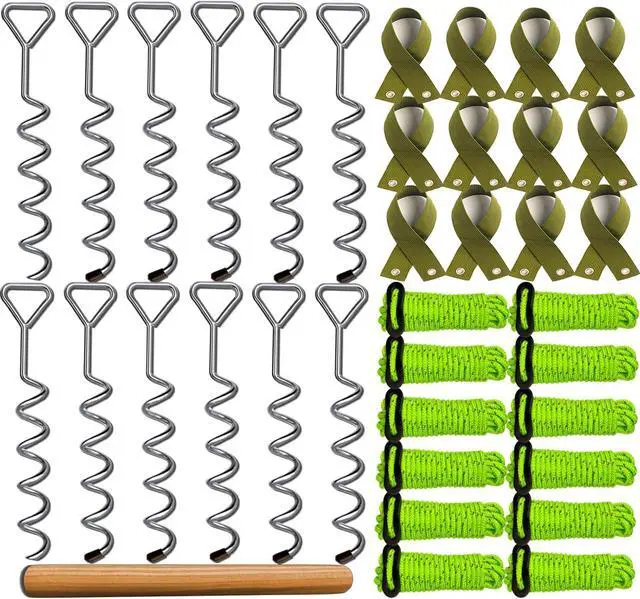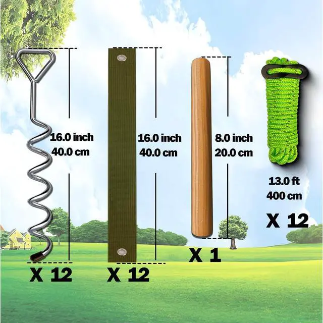 Multi-Functional Ground Anchor Kit: This Ground Anchor Kit is not only suitable for tree support but also for securing tents, swings, and trampolines. As spiral stakes, metal tree stakes, and screw stakes, this kit ensures equipment does not shift or collapse during use. Its heavy-duty design makes it an ideal choice for screw-in tent stakes, providing strong support and safety for various outdoor activities.