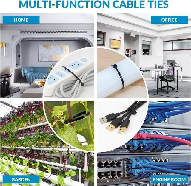 Easy UsingArrange the things to be bundled, and then bend one side of the small saw blade inward, pass the arrow through the other part of the button, and easily pull it. zip ties perfect for home, pc cable management, office, garage.