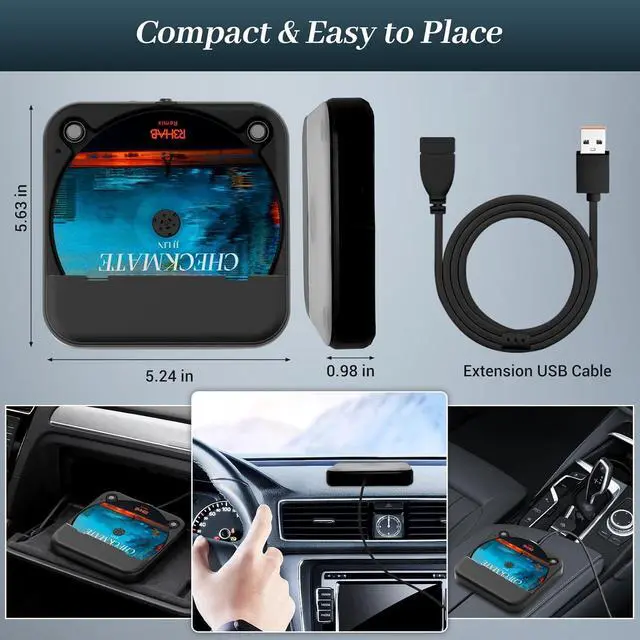 Big Wow Factor: Your car's secret style upgrade & ultimate gift idea! Wherever You place it, it fits! Tucks neatly into glove compartments, center consoles, or front car window. No more bulky devices taking over your dashboard! Sleek, matte finish blends seamlessly with any car interior, adding a touch of sophistication to your ride. This USB car CD player is perfect for car without CD player.