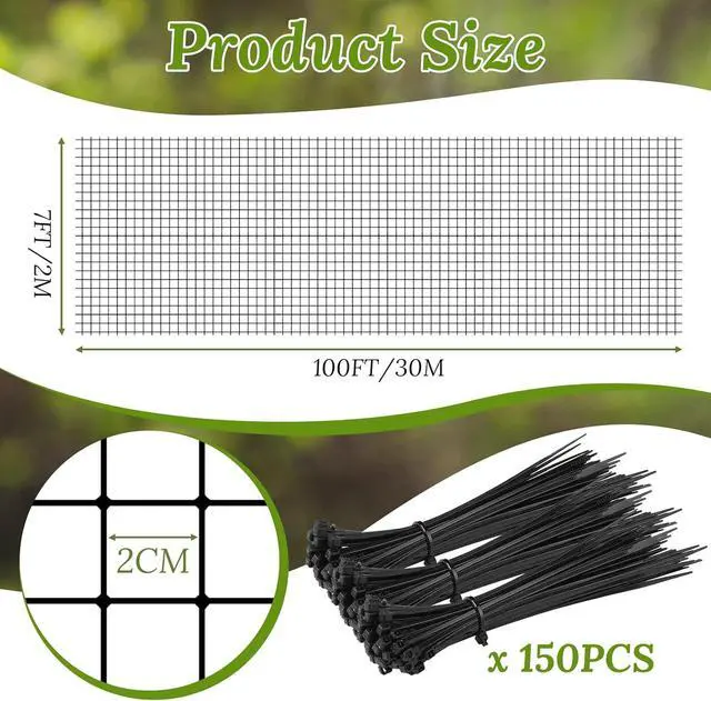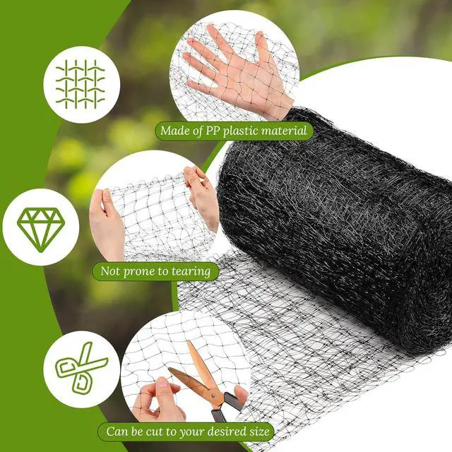 Size Information: bird netting for garden measures about 7 x 100 ft, mesh holes are about 0.8 x 0.8 inch/ 2 x 2 cm, you can cut garden netting for birds to the size you need and secure bird netting with ties