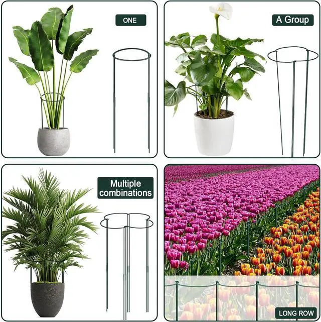 Easy to use: Push the garden support stakes into the ground, used as a single half or interlinked to form rows, circles, cloverleaves etc, ell prop up plants to grow upright and healthily, It can be detached and reused, can be overlapped.