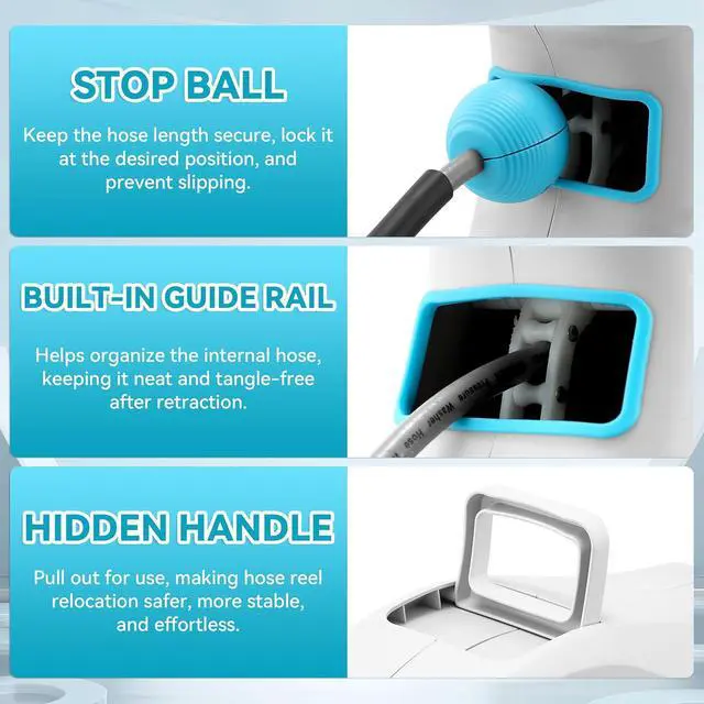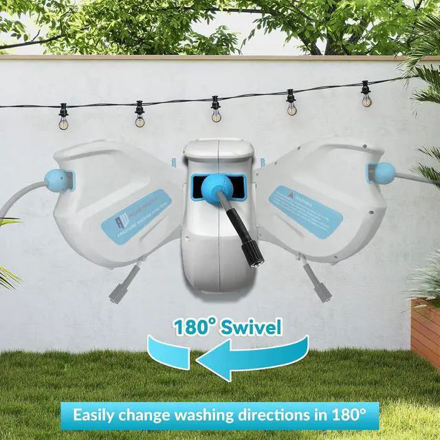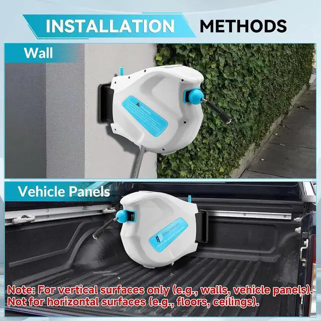 WARM TIPS: Please note that hose reels can only be installed vertically for walls, tricycles - pressure wash hose reels should not be installed in electric washing machines, floors or ceilings. Before use, make sure the pressure washer hose with reel is securely installed to avoid moving or falling off during operation, which could lead to accidents or damage
