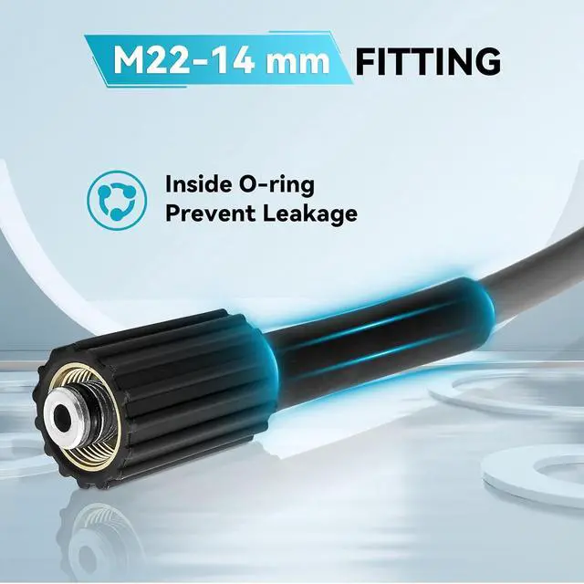 Capacity: 65 ft; M22 14mm fitting are compatible with most pressure washers, providing reliable performance for your cleaning tasks