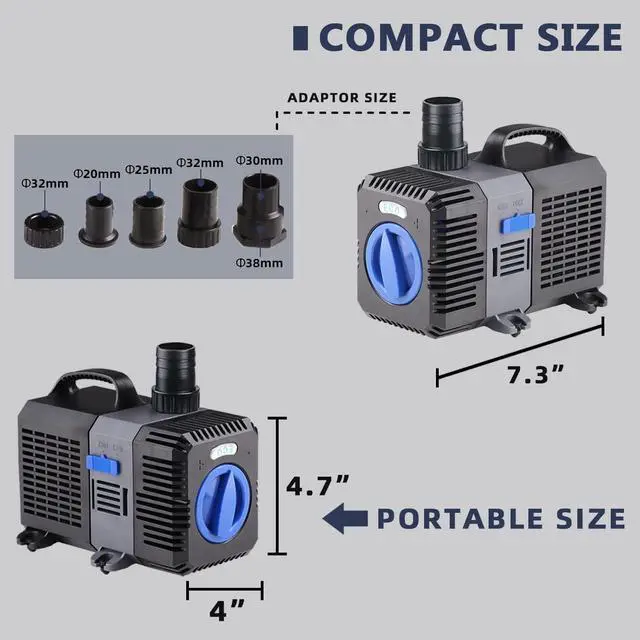 Flow Adjustable Frequency Electric Inline Garden Submersible Pond Filter Pump For Fish Tank Fountain Aquarium Waterfall Koi Salt Fresh Water (1000GPH)