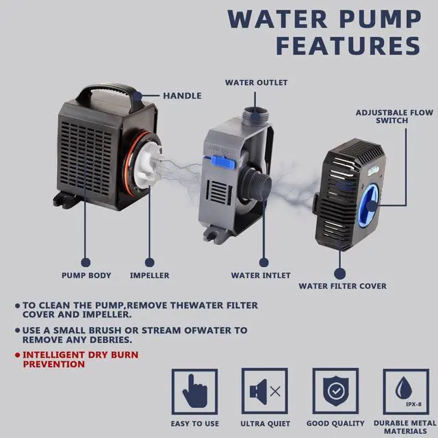 Max Flow Rate: 1000GPH (Adjustable); Max Delivery Height: 9.1FT