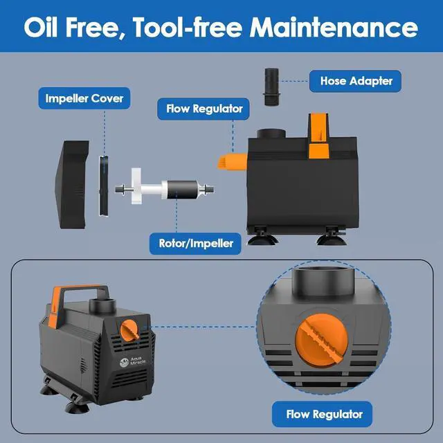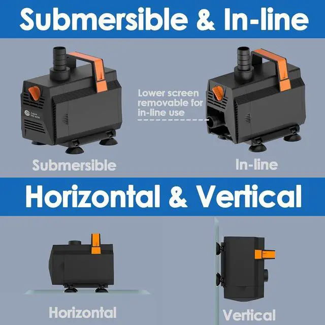 CONVENIENT MAINTENANCE - Designed with a handle for portability, this fountain pump is user-friendly. Maintenance is hassle-free with no lubrication required and no special tools needed. Simply detach the front screen, rinse the components, and reassemble.