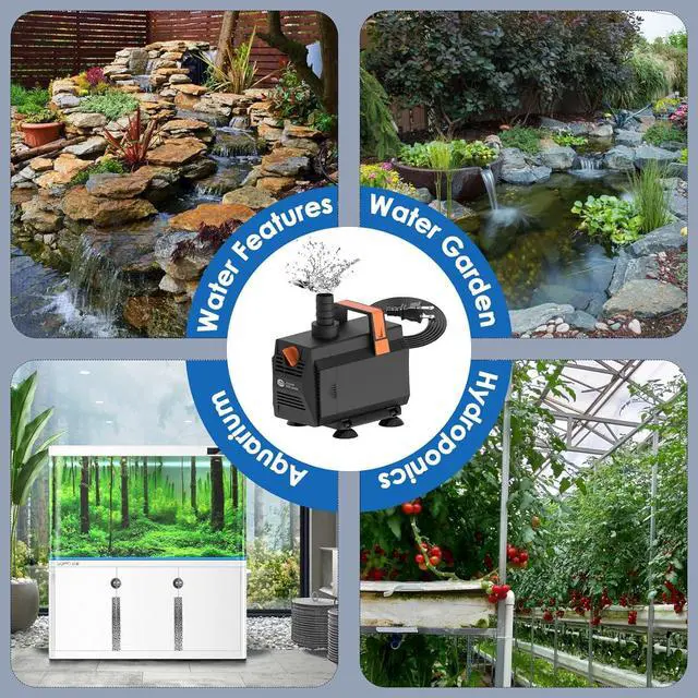 MULTIPLE APPLICATIONS - Ideal for both freshwater and marine water, this submersible fountain pump is perfect for fish tanks, ponds, waterfalls, fountains, hydroponics, horticulture, and water gardens. Enjoy its versatility in various aquatic settings.