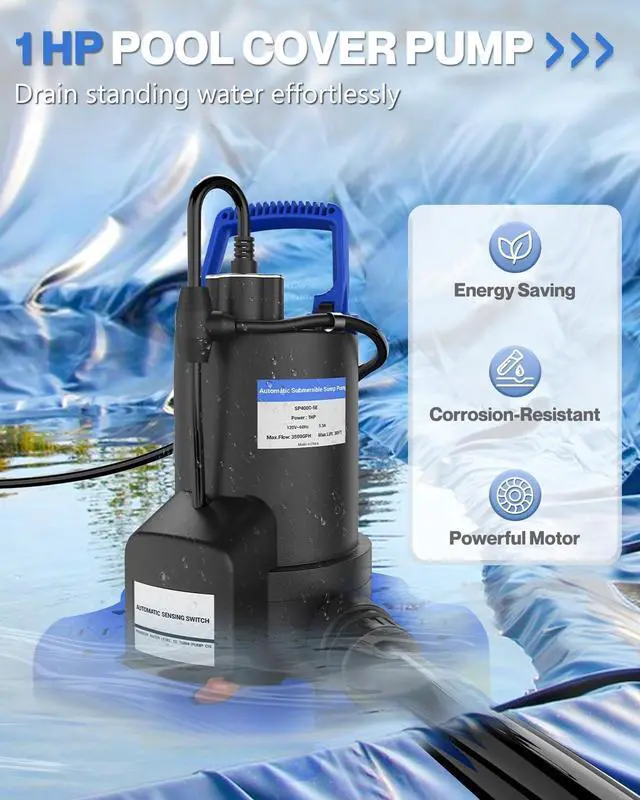 Pool Cover Pump - Automatic on off for Swimming Pool, 1 HP 3500 GPH Submersible Water Pump for Pool