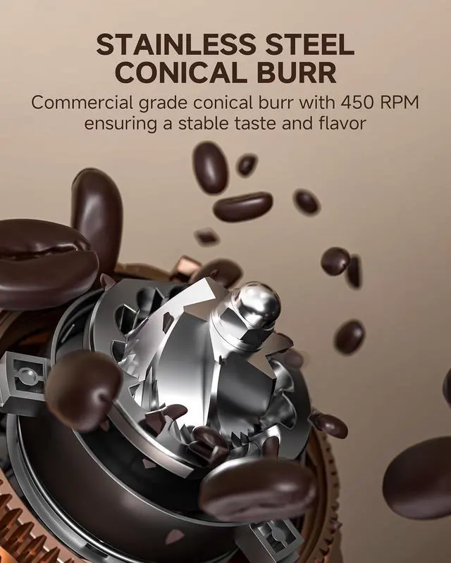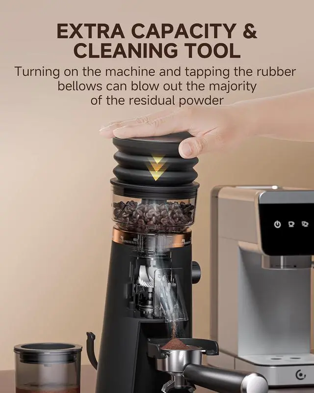 Timed Grinding & Complete Accessories Effortless Control & Stylish Design: Enjoy easy portion control with 560s timed grinding. Includes dosing funnel stands (58mm & 51/54mm), a magnetic knock tool, and a compact holder for storage. Finished in black with rose gold accents, it blends seamlessly into any modern kitchen.