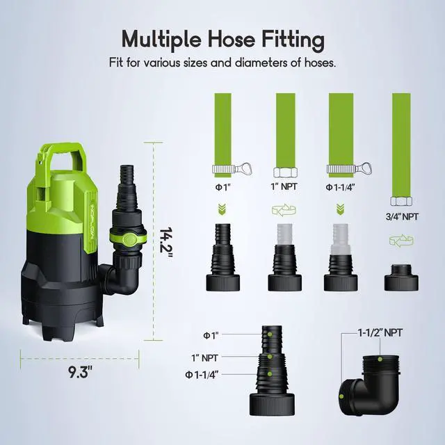 Wide Applications and Customer Support: Perfect for swimming pool, hot tub draining, basement flooding, ponds, sump basins, cellars, water tanks, crawlspaces, and seasonal clean-ups. Also ideal for transferring clean water for garden irrigation. Our sump pump features efficient performance and a quick-connect design for fast water removal. Backed by responsive customer support, we provide professional advice on installation and maintenance