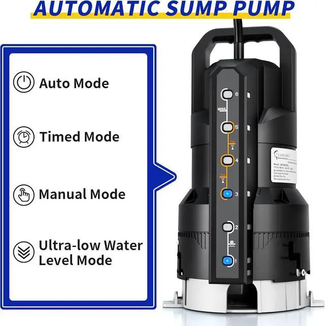 • Customizable Operations - The submersible water pump features 6 operating modes. 4 start water levels and 4 stop water levels, combined with an adjustable base, meet the vast majority of needs