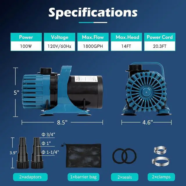 MAINTENANCE MADE EASY: Mesh cover, impeller housing, and rotor can be removed without tools for simple cleaning. Clean as needed depending on water conditions to keep the pond pumps for outdoor ponds performing efficiently. Refer to the user manual for step-by-step guidance.
