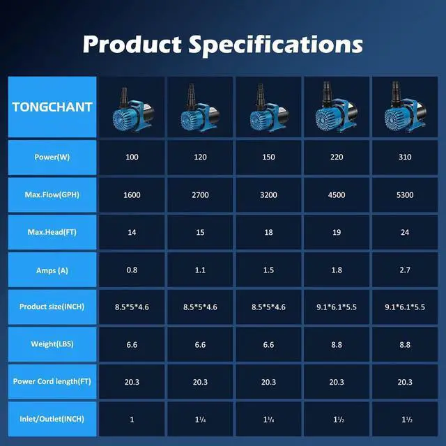 SIMPLE SETUP: Built-in carry handle and four suction cups allow stable placement. Two nozzles fit different tubing sizes, and the 20.3 ft power cord provides flexible positioning. Ideal for fountain pump applications or backyard water features.