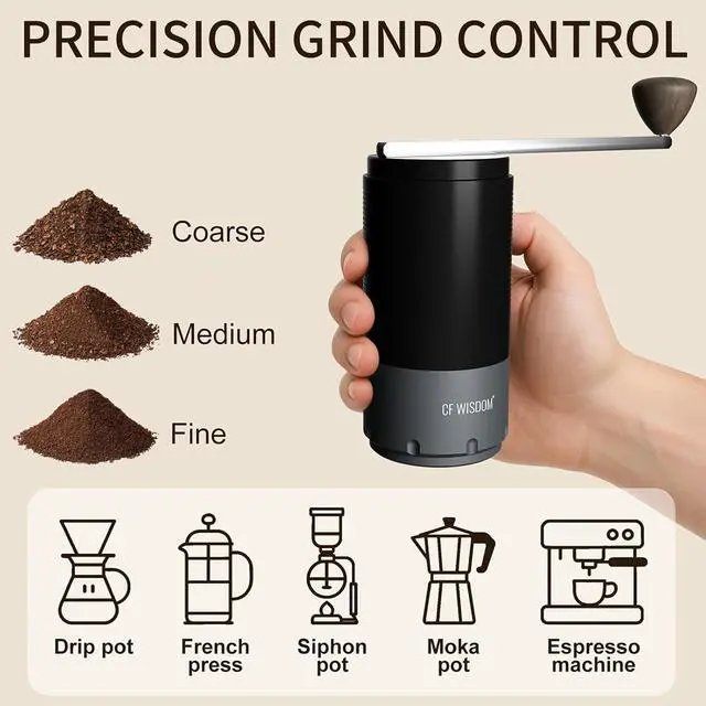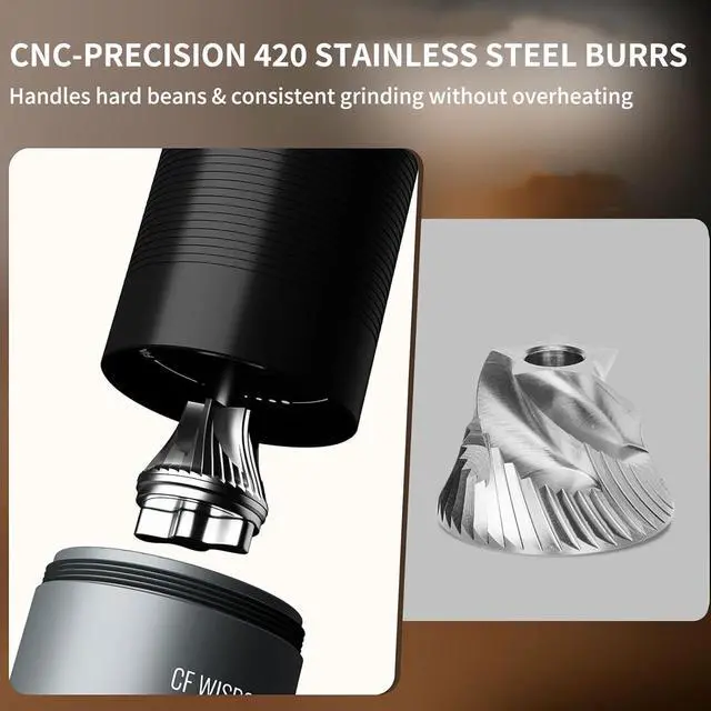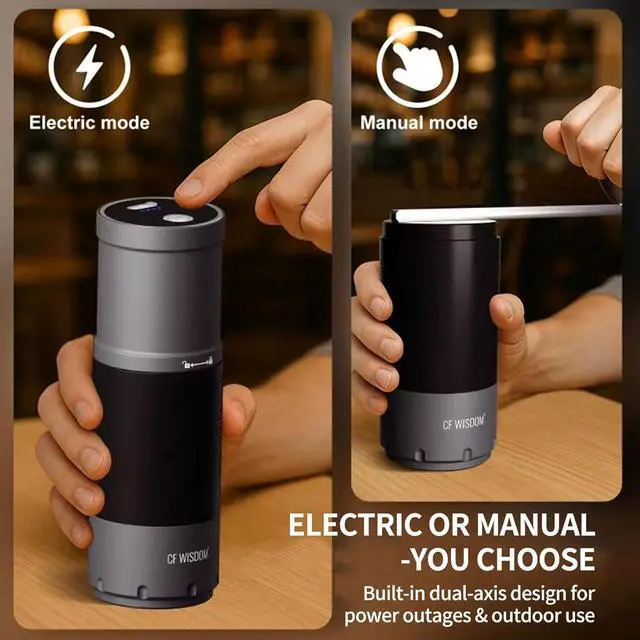 Coffee Freedom On the Go: This dual-mode manual and electric manual coffee grinder weighs just 658g and fits comfortably in one hand. Compact enough to slip into your backpack, its perfect for travel, camping, or use as your office coffee grinder