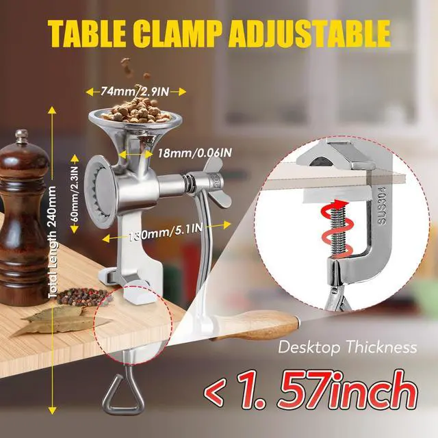 Small & Low Noise--This small grinder can process a small amount of dry stuff at a time. Materials no larger than the size of soybeans. When grinding, the material needs to be poured in a Small amount, and the speed should Not be too fast. It produces much less noise than electric ones.