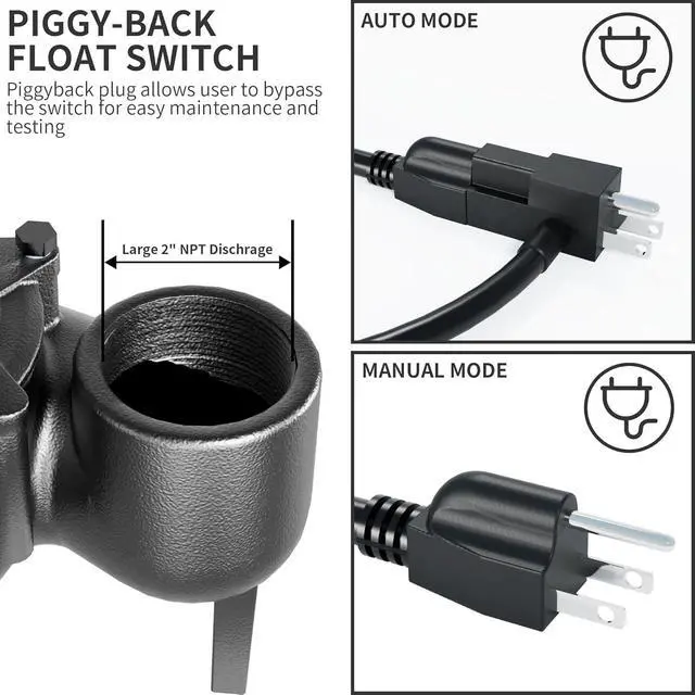 [AUTOMATIC FLOAT SWITCH] Adjustable float switch automatically turns on/off the pump depending on water level in sump basin. When the water level rises above the pump, the pump will automatically start working. When the pump can not pump water, it will automatically disconnect the power.