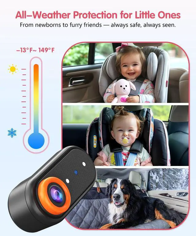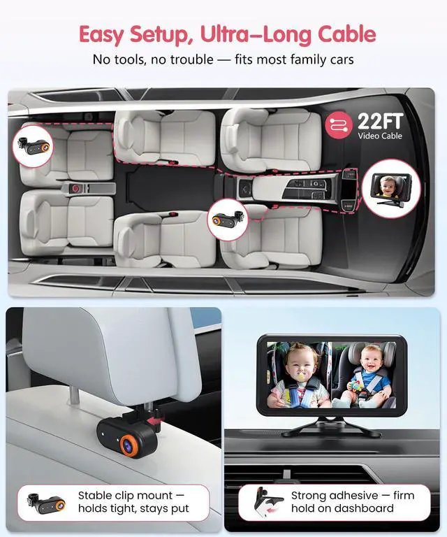 - - Our exclusive anti-shake suction mount is built to stay steady on rough rides. No sticky residue, easy to reinstall, and holds firm every time. Perfect for families using car seat monitors across multiple vehicles