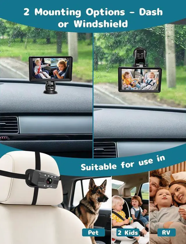 Wide Compatibility & Stable View: Fits most vehicles including sedans, SUVs, and trucks. With 360° adjustable lenses and anti-shake stable mount, it maintains a clear, steady view for daily commutes and family road trips.