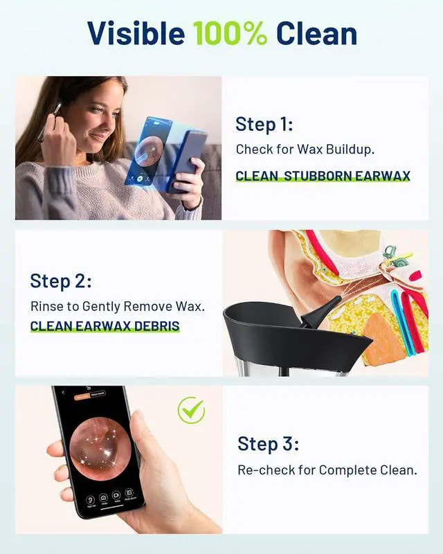 Easy Self Care Solution: Lightweight ear wax cleaning system with ergonomic grip; tilt head slightly when using ear washer so water drains smoothly for easier cleanup