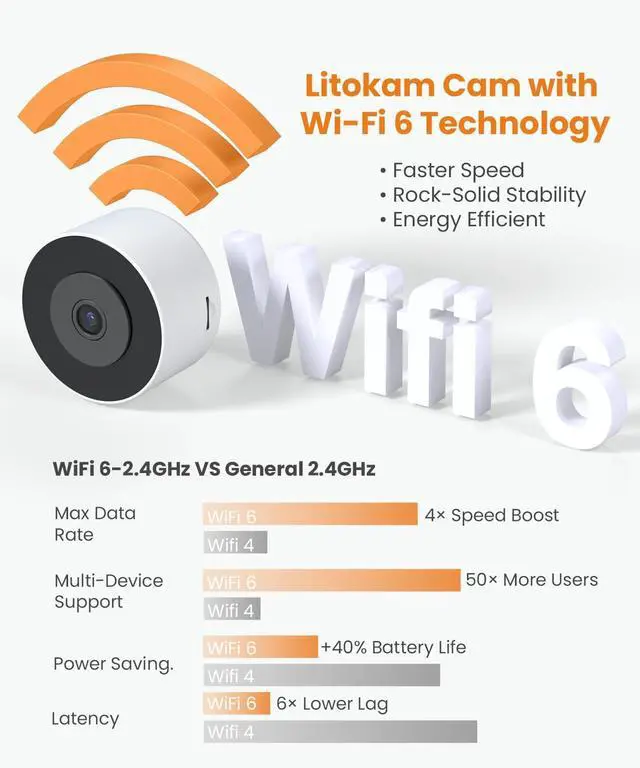 [WiFi 6 Stable Connection & 24/7 Recording] This indoor camera supports the latest WiFi 6 technology and is compatible with 2.4GH z networks, ensuring faster and more stable data transmission. It supports 24/7 continuous recording (requires an SD card or cloud service which sold separately), capturing everything that happens in front of the window. Whether you want to review daytime visitors or check for unusual activity at night, the complete video record provides reliable evidence.