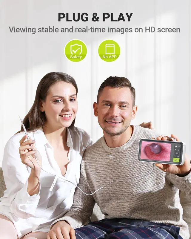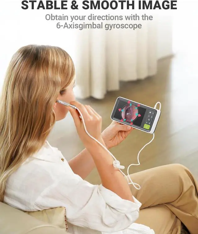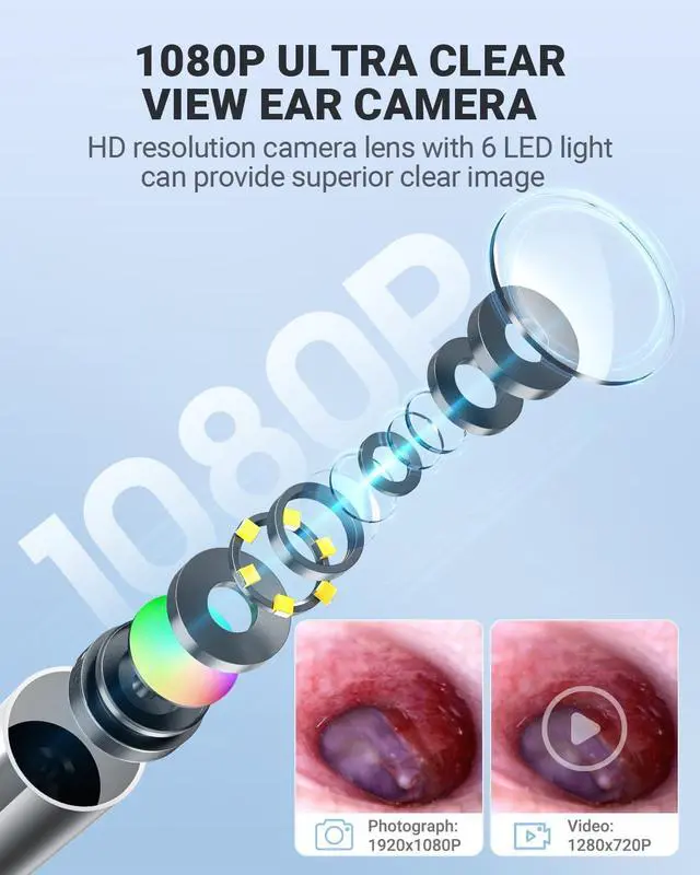1080p HD Ear Camera - The high-definition otoscope camera with 6 LED lights to illuminate the dark environment of the ear canal, helping you see a clearer picture in real time for a precise inspection and effective ear wax removal. Suitable for adults and pets. Check teeth, nasal cavity, throat, scalp roots, and other body parts