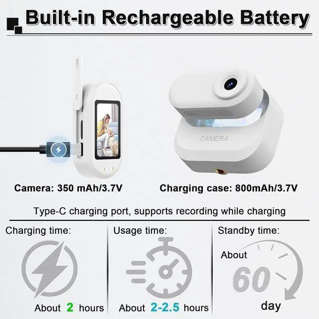 Simple operation: Insert a micro SD card (not included) to use. The two-button operation allows you to take photos and record videos. This product is perfect for pet lovers, vloggers, and anyone who loves capturing precious moments.