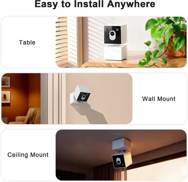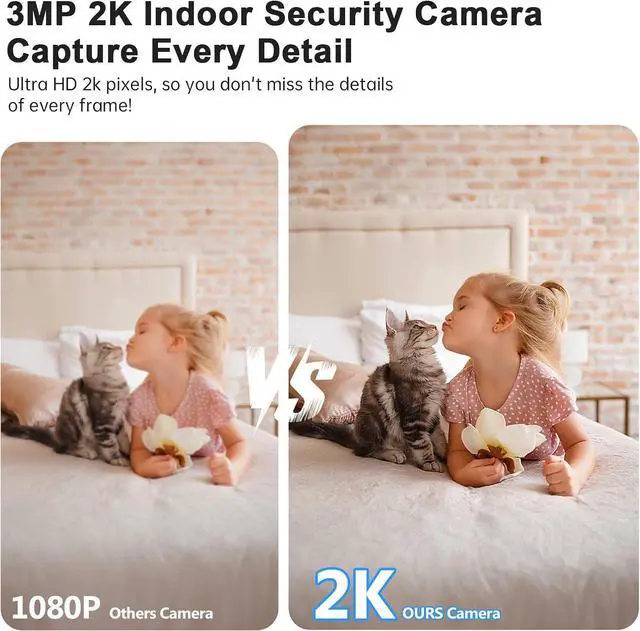 2K HD Resolution and Color Night VisionOur security cameras indoor delivers 2K quality video and images, ensuring that you can see clear details day and night. The baby camera supports infrared night vision and is not affected by darkness. Clearly capture objects within a 3-feet range even in low light conditions.