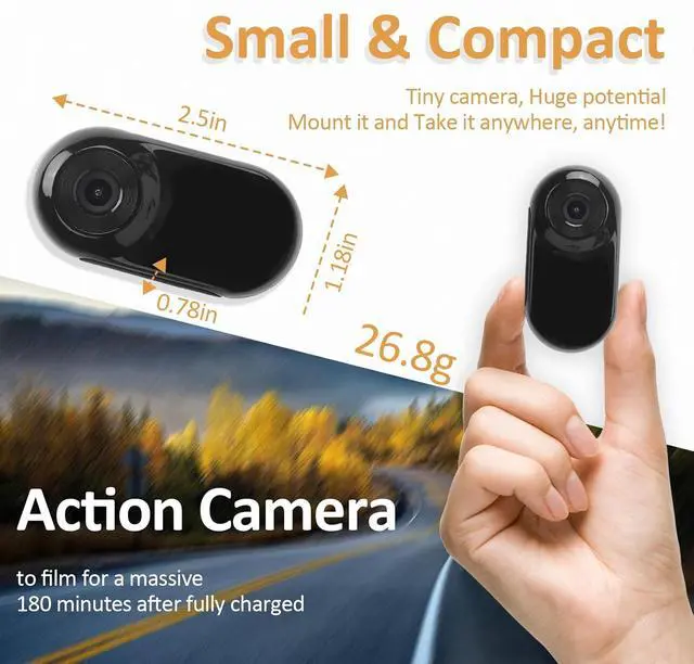 4 3-Hour Continuous Recording with Audio & Loop Function Capture long sessions of exciting first-person footage while cycling, hiking, or fishing. Powered by a built-in 350mAh rechargeable battery, this miniature body camera with audio offers up to 3 hours of continuous use. The camera conveniently segments video recordings into 5-minute clips, allowing for easy file management and seamless loop recording.