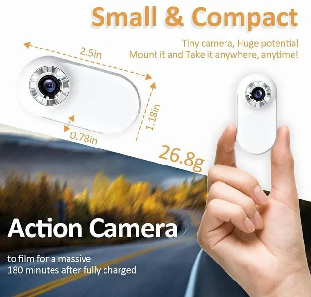 53-Hour Battery & Simple Data Sharing The built-in 350mAh battery supports up to 3 hours of continuous recording, ideal for long outdoor walks. Easily transfer videos to your phone or computer via the included Type-C adapterno App or