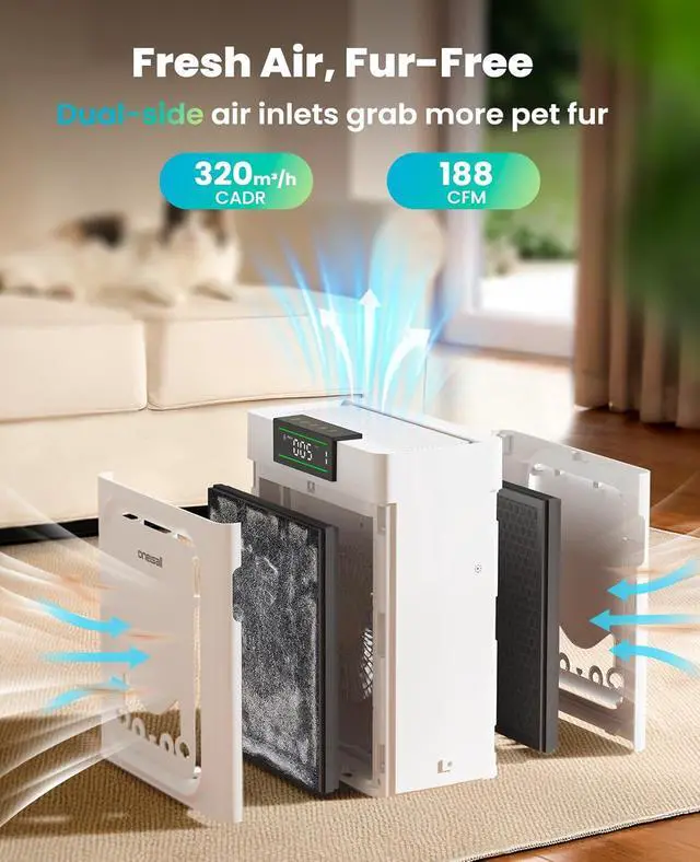 Effortless One-Swipe Clean: The air cleaner comes with a cleaning brush for quick pre-filter care. Just open the cover, brush away hair and dust, and instantly restore performanceno rinsing or drying needed. Easily maintain the HEPA filter and reduce replacement costs.