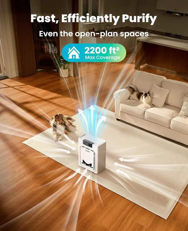 Peaceful All Night: At only 25 dB in Sleep Mode, this HEPA purifier runs quieter than a whisper, ensuring undisturbed rest for both you and your family. For sound-sensitive pets, its ultra-quiet design keeps them calm and relaxedso everyone enjoys completely undisturbed rest.