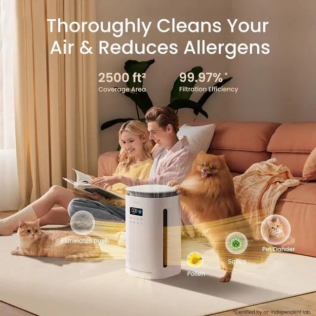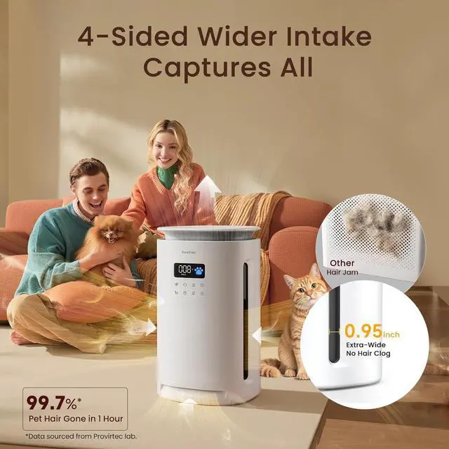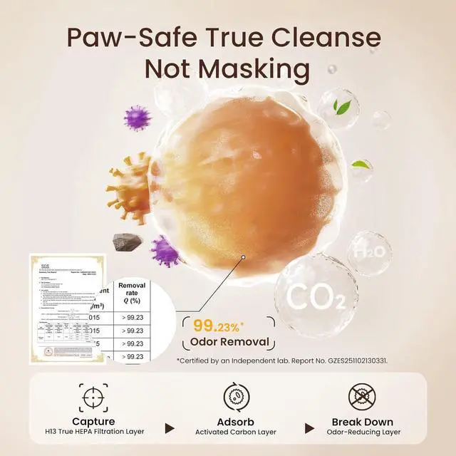 Wondering About Your Air Quality 24/7? See It At a Glance! Stop guessing why you or your pet are sneezing. Our air purifier pet hair comes with a built-in PM 2.5 air quality display indicator, allowing you to see the air improve in real time. Set this pet smell odor eliminator to Auto Mode, and it intelligently adjusts to maintain a healthy environment for your pet's tiny lungsso everyone can breathe easier and relax