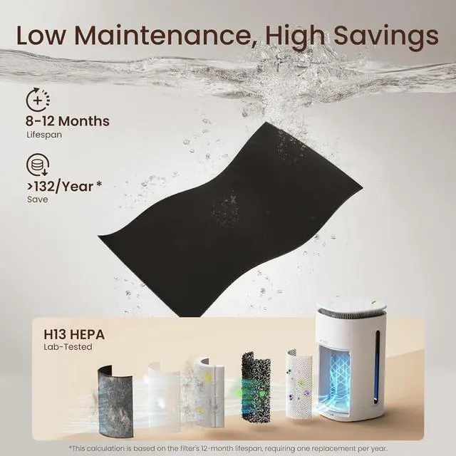 Tired of Frequent, Costly Filter Changes? Save 65%! Our washable pet-specific pre-filter traps cat hair, dog hair and large debris upfront, extending the HEPA filter's life up to 12 months. Reduce yearly replacement costs by half and spend more time enjoying life with your furry friends, suitable for this heavy duty air purifiers for home