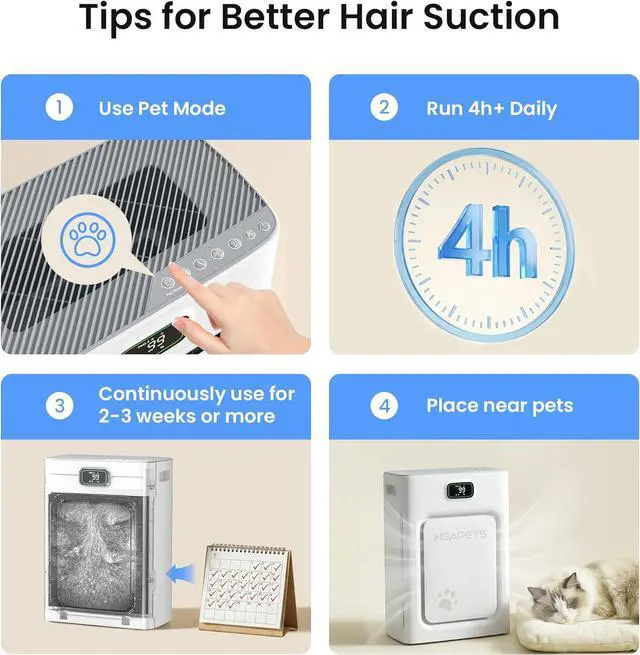 Multi-Stage Advanced Air Purification System: our P358 air purifiers for home pets are based on the general air purifiers to increase the function to adsorb pet floating hair and solve the pet odor. The multi-layer filtration system rapidly cleans indoor air within minutes, effectively filtering out pet dander, airborne fur, stubborn odors, dust, smoke, particles, common allergies and pollutant for dog room, cat room, pet room, etc.