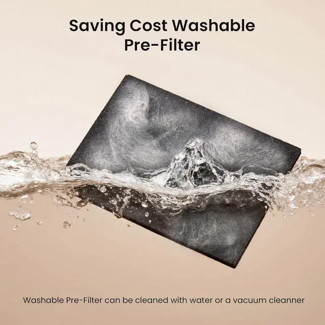 Save 50% Costs on Filter: our replacement filters are divided into static pre-filter cotton and composite filter. Compare to Regular air purifier which has a max filter life of 3 months, our Replaceable Electrostatic Pre-filter, which extends the life of the main HEPA filter from 3 months to 6 months, saving you 50% cost. (For authentic filters, please search for B0DT6CWC1K Composite Filter or B0DT5RNTPV Pre-filter.