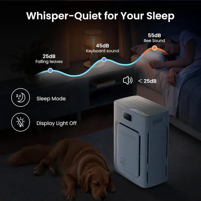 Coverage: With a footprint similar to A4, its dual-sided and super-large air intake can clean air from both sides simultaneously, delivering 2 times faster purification compared to traditional single-intake model. With a CADR of 176 CFM (295m³/h), this P358 pet air purifier refreshes the air in large areas up to 2500 ft² every hour. It's all perfect for bedroom, living room, office, nursery, kitchen, basement, apartment, etc.