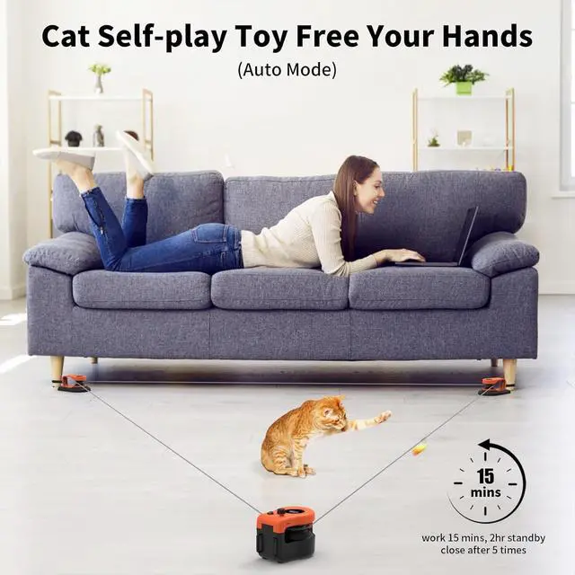 Free Your Hands: This electronic smart cat toy has built-in safety protection mode, running for 15 mins, then sleeping for 2h, and shuts down after 5 times to prevent pets from being overworked or injured when playing excessively; so your pet cat can play itself and no longer be lonely and bored when the owner goes out. Hands-off ways to keep your indoor cat entertained. Boredom busters for cats!