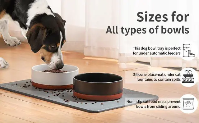 ANTI-SLIP CONSTRUCTION - Featuring a rubberized bottom pad, our anti-slip design ensures your dogs and cat's bowls and mat keep in place which can make your lovely pet eat safely. also keep floor safely. no scrach. It can be used both indoors and outdoors as a pet food water bowl mat.