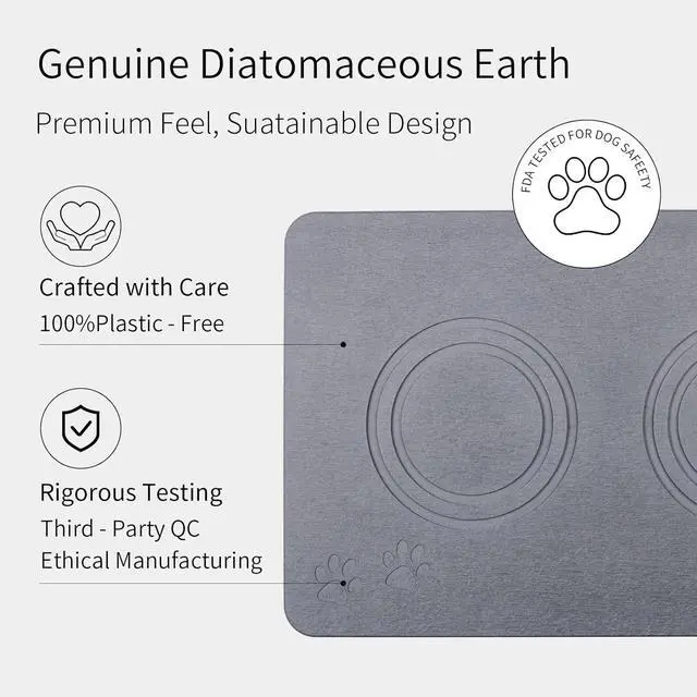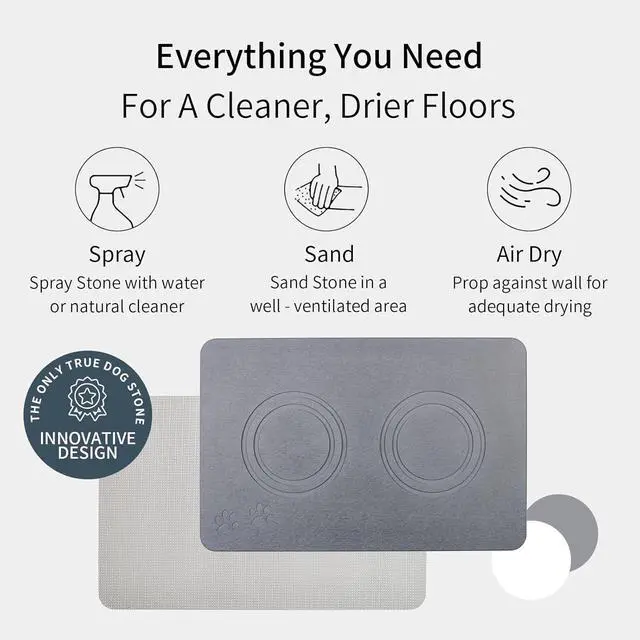 Clean Keep Home Tidy: This stone pet food mat accommodates pets' food bowls, water bowls, and auto feeders eciently; It's an ideal way to keep your feeding area clean and tidy. It's the perfect solution for all your daily drying needs! Stone Base made with diatomaceous earth that's designed to instantly remove water, helping to prevent messes and unpleasant odors. Save lots of your time to clean mat and floors.