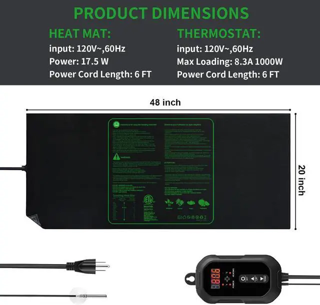 Durable & Waterproof - This heat mat is made with waterproof, flexible and long-lasting material and SPT-2 5.9 ft safety power cord. Easy to clean and maintain