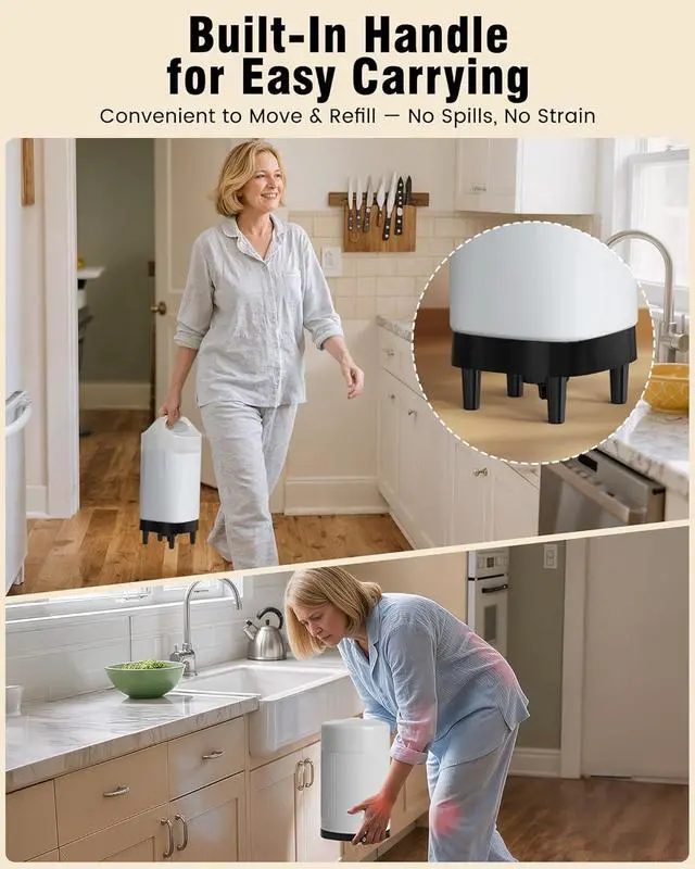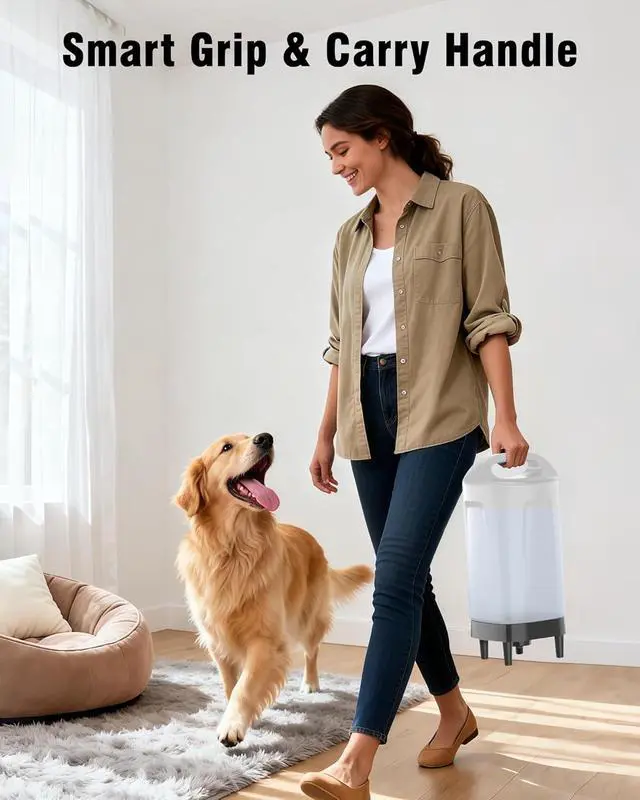 Ergonomic Handle for Easy CarryingEquipped with a strong built-in handle, the dispenser is simple to lift, refill, and reposition even when full. The practical design minimizes the risk of spills and strain, making it convenient for families, seniors, and households managing large-capacity pet supplies