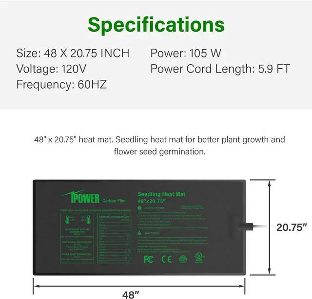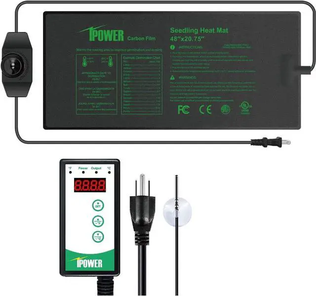 Package included: 1 pack seedling heat mat with temperature adjustable knob, 1 pack digital heat mat thermostat controller.