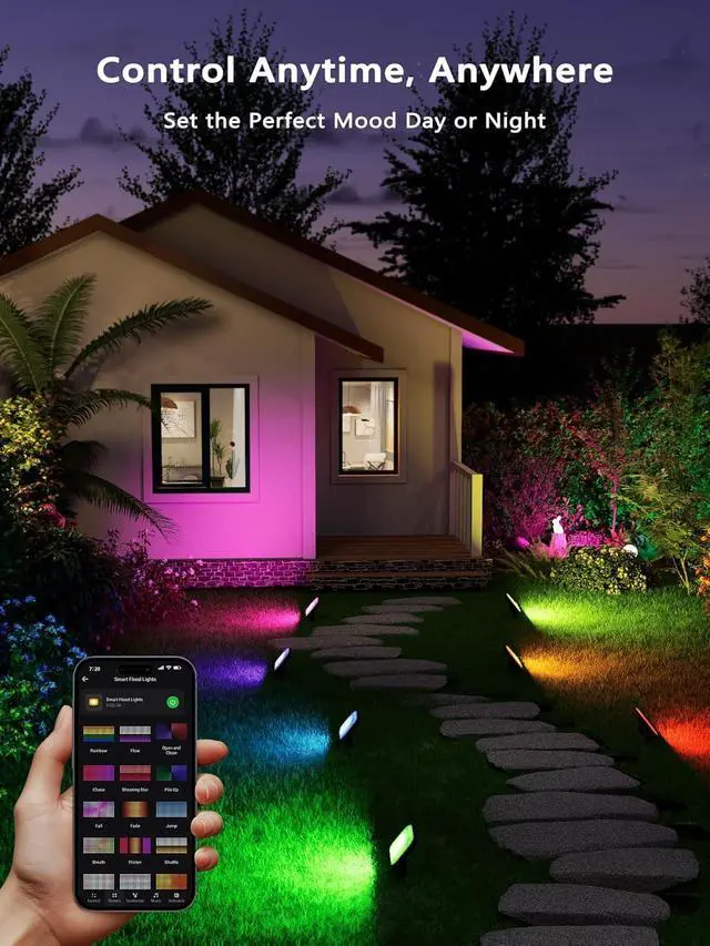 Group & Zone Control: Manage multiple lights simultaneously with the group control feature for a synchronized lighting experience(perfect for gardens, patios, or events).