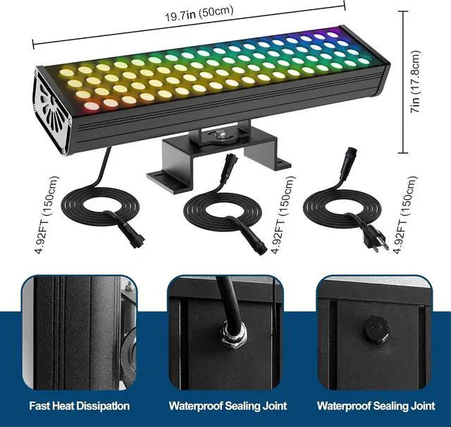 Coverage Linkable Wall Washers: Illuminate large areas with ease. Each unit outputs 72W per color (360W total) for an ultra-bright wash that replaces multiple ordinary lights. Link several lights in groups they work together or alone to cover your entire yard or façade with synchronized colors. The wide 120° beam effortlessly lights up walls, trees, or stages, doubling as landscape spotlights or outdoor security flood lights when needed.