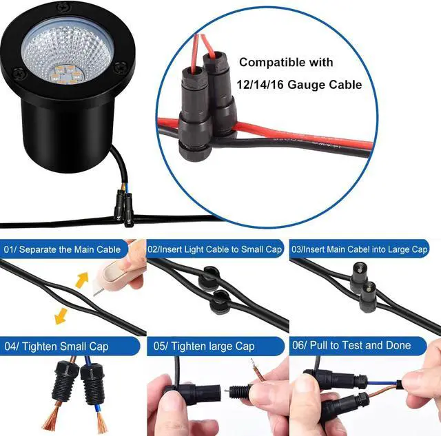 Plug & Play Low Voltage Landscape Lighting 40 industrial-grade connectors enable 15-minute installation of 12V/24V landscape well lights - compatible with most 100-300W transformers using 12-16AWG landscape cables.