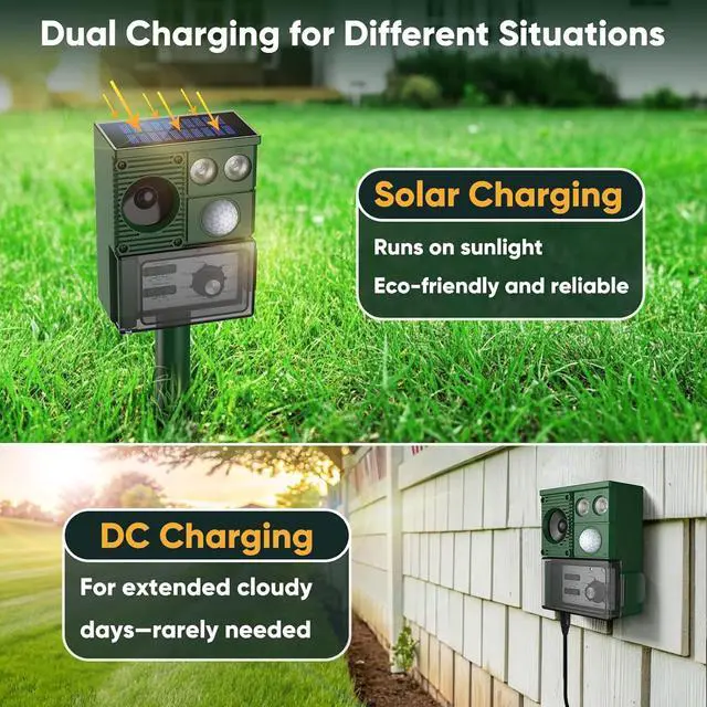 & - Our motion-activated deer repeller uses harmless ultrasound waves and flashing lights to keep animals at bay. Its safe for pets, people, and the environment. With IP65 waterproof protection, its built to withstand all weather conditions, ensuring your garden stays pest-free.