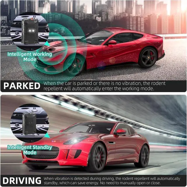Pets: This vehicle ultrasonic mouse repeller has power on self check and vibration detection functions, which can effectively prevent rodents such as mice and squirrels from invading your car while not harming your pet. The ultrasonic mouse repeller will turn off when it senses motion and has a safety switch that will not exhaust the battery. In short, this car's mouse drive is practical and easy to install, making it an ideal choice for protecting your car.