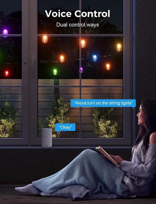 Hassle-free Group Control: Manage multiple sets of led patio string lights as a single unit to sync the same series of lights across locations with one touch; and you can also easily control the same set of string lights with your family or friends